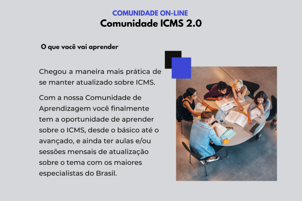 Somos a única comunidade que trata exclusivamente sobre o estudo do ICMS, interpretando a legislação com especialistas e profissionais que lidam diariamente com o imposto que mais se arrecada. Serão apresentadas situações reais que irão transforma os integrantes de nossa comunidade em expert em ICMS.