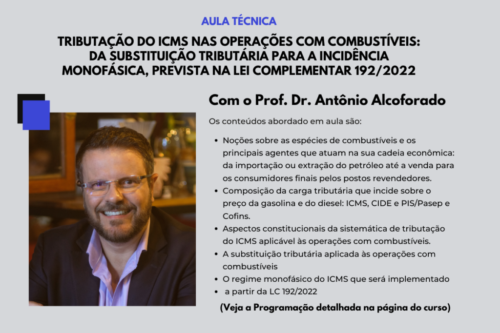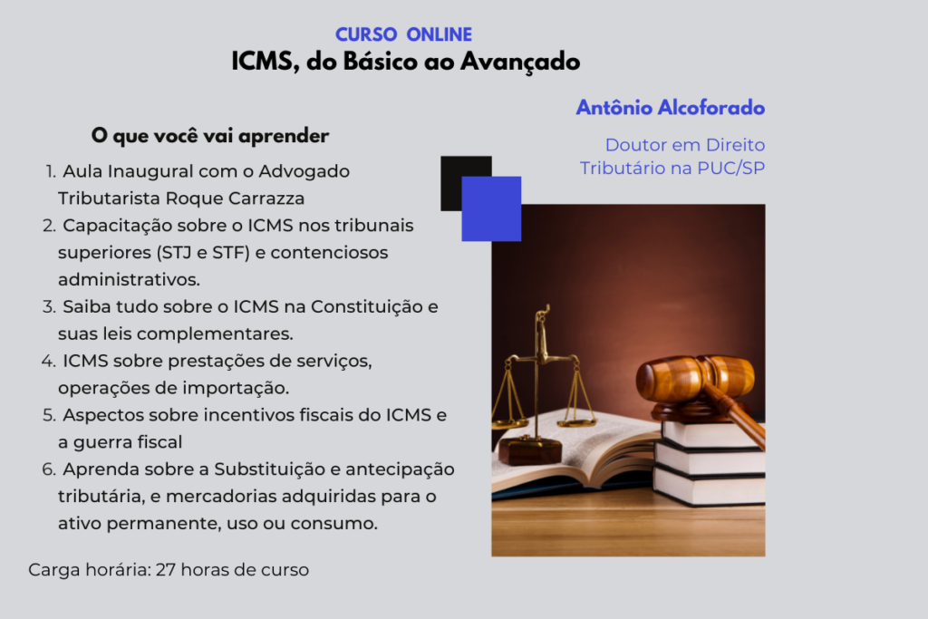 Capacite-se ou recicle seus conhecimentos sobre o ICMS por meio de exposições teóricas combinadas com apreciações de casos práticos, inclusive de julgamentos sobre esse imposto nos tribunais superiores (STJ e STF) e contenciosos administrativos.